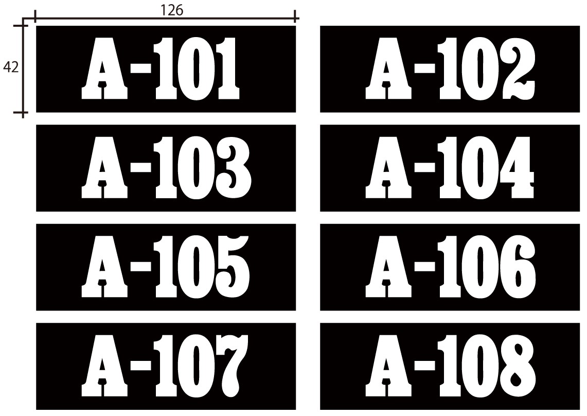 ルームナンバー ・ ポスト番号 ・ 駐車場番号 ・ ロッカーナンバー ・ 下駄箱ナンバー ・ 更衣室番号 ・ 台車ナンバー ・ 倉庫番号
